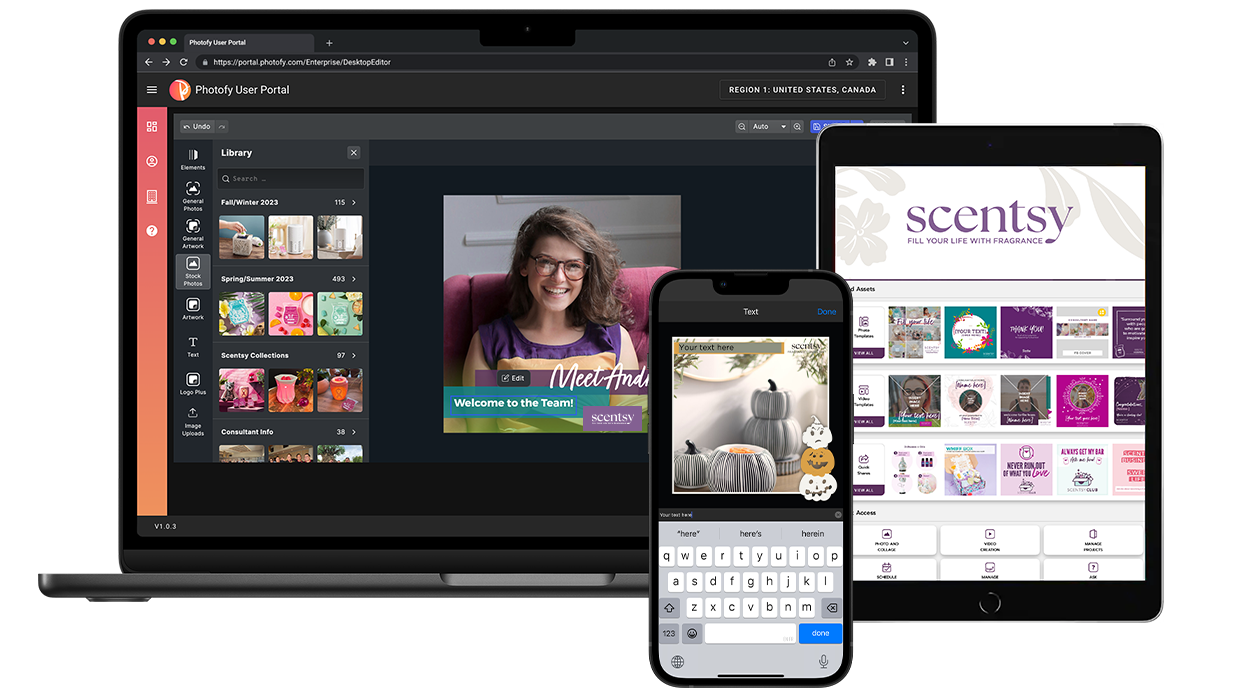 The Scentsy Photofy Enterprise subscription is a powerful marketing tool designed exclusively for Scentsy consultants. It provides access to Photofy’s extensive library of ready-made Scentsy social media templates, collages, and graphics, all tailored to enhance your social media presence and capture more leads.